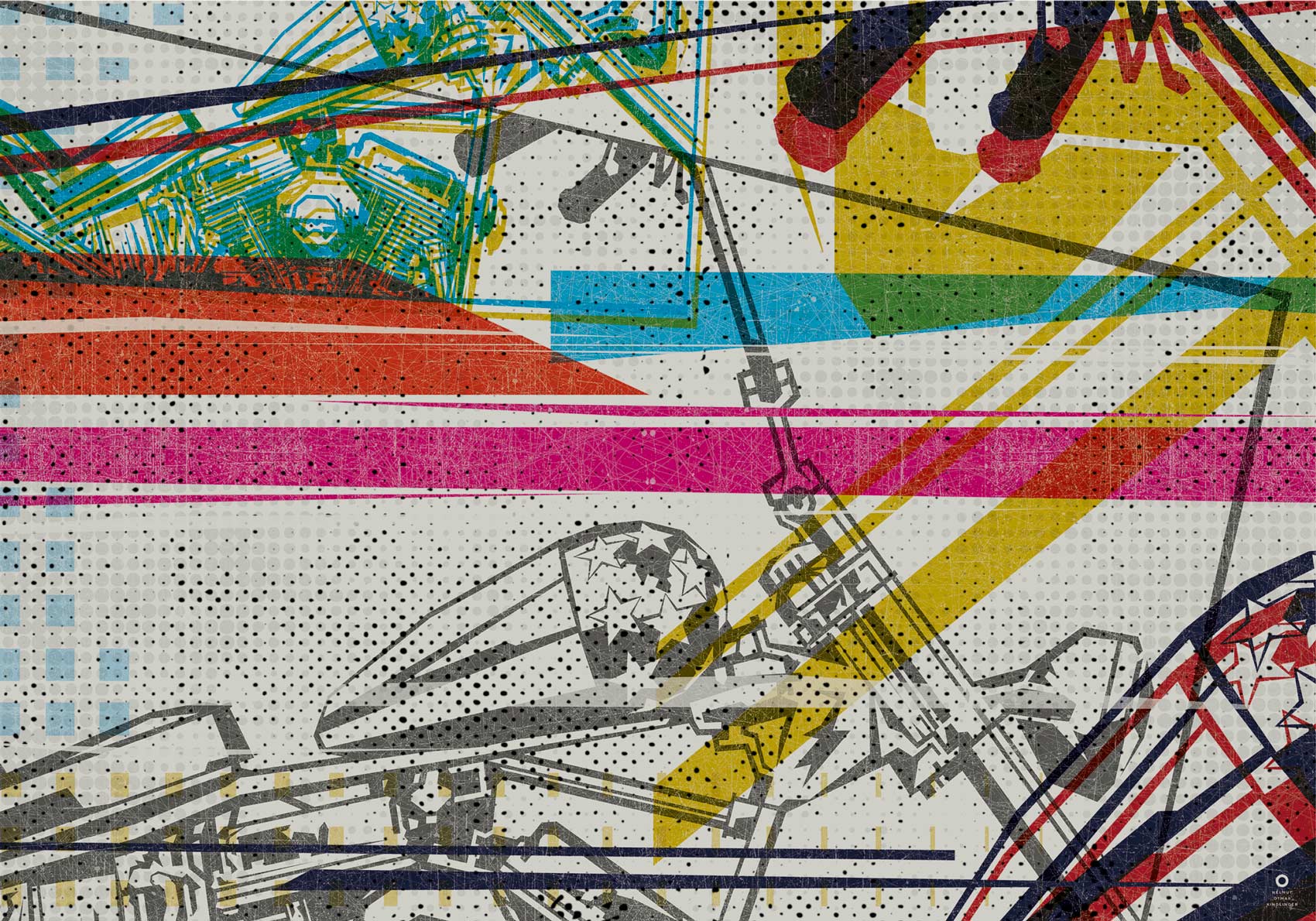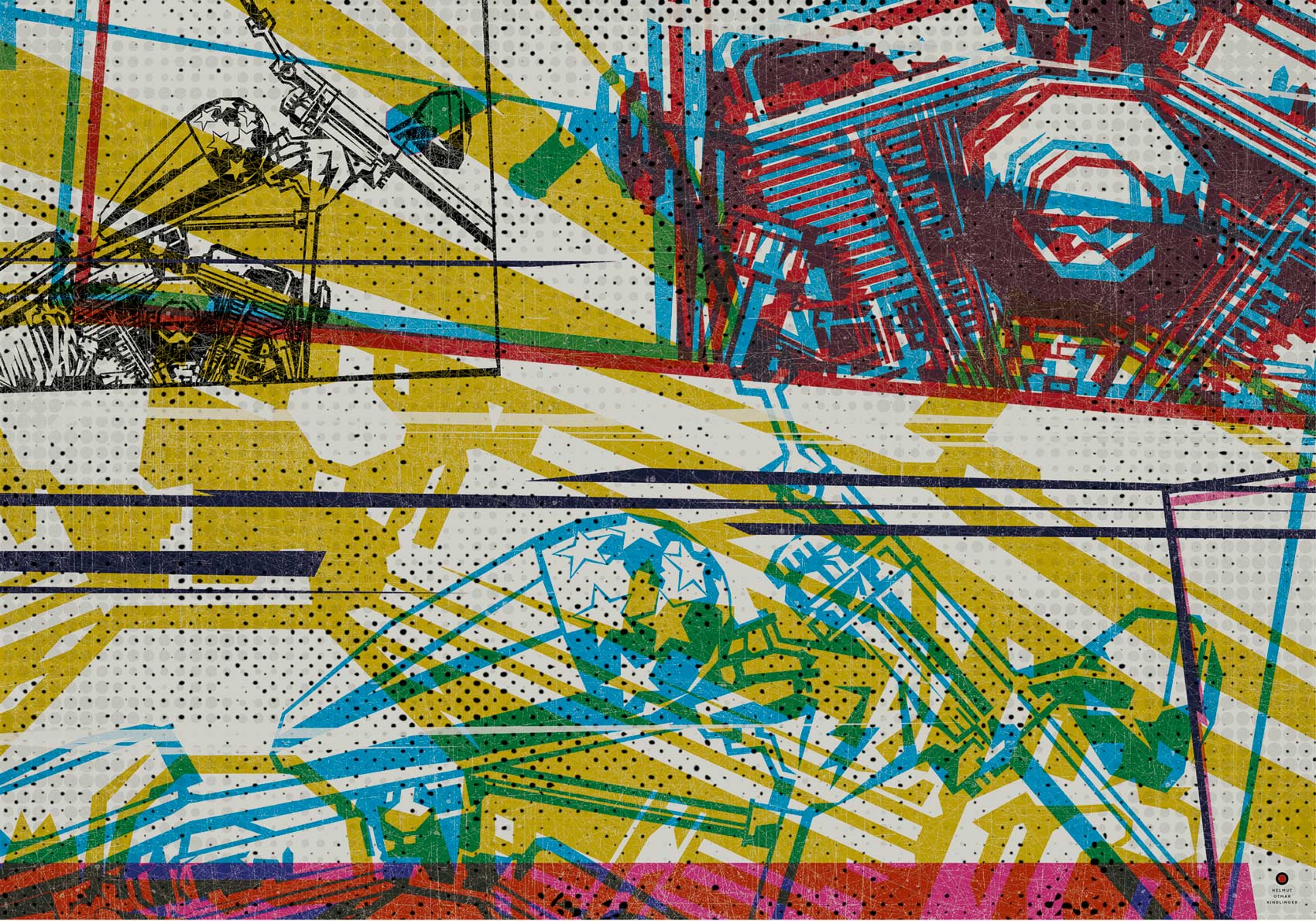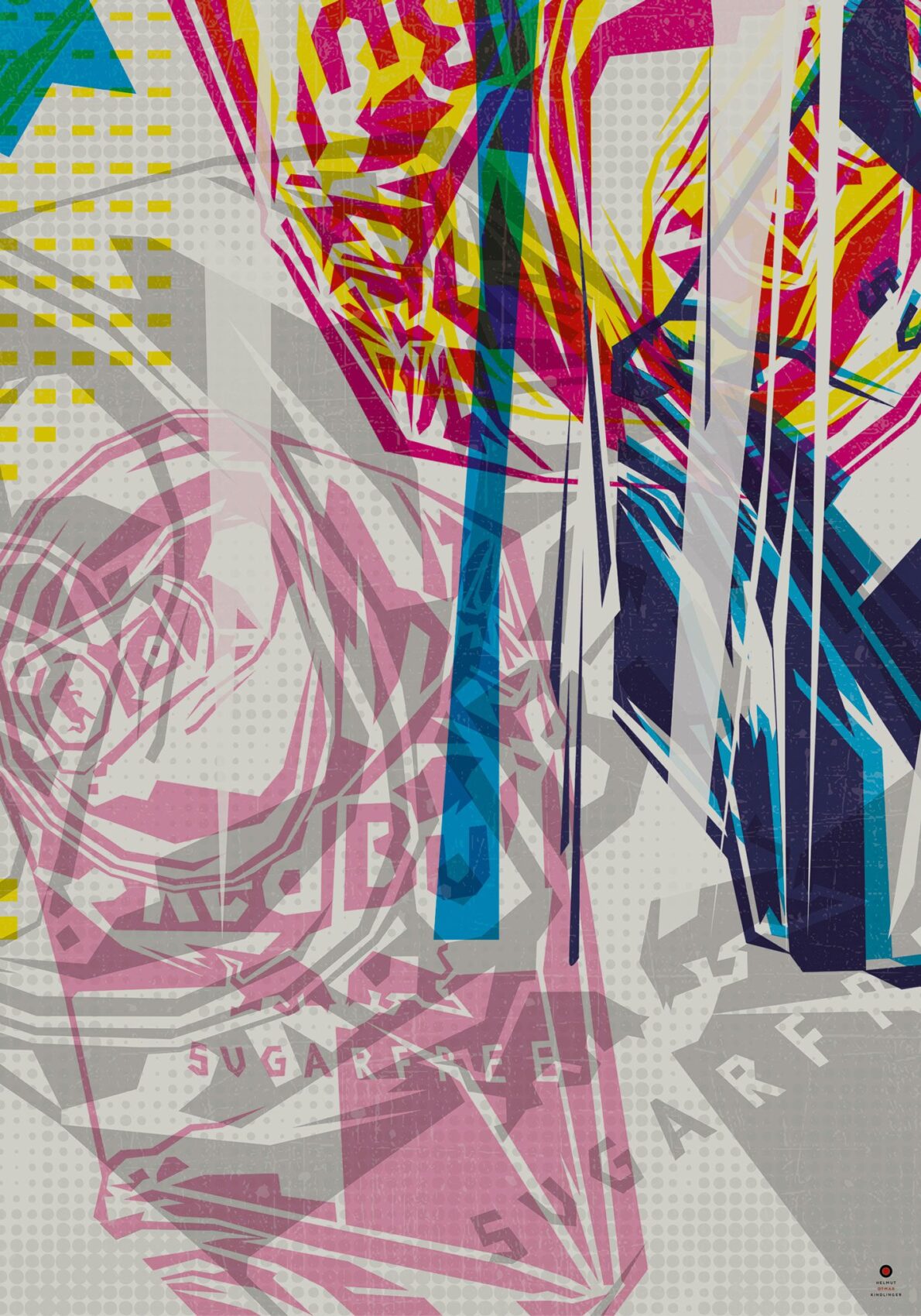 Die Arbeiten sind von der langjährigen Zusammenarbeit mit Druckereien inspiriert und nutzen den Look von Makulaturdruckbögen als Impulsgeber für den künstlerischen Ausdruck. Die Herangehensweise des oftmaligen Überdruckens verleiht den Werken eine wilde, ungeordnete, farbübersteigerte Ästhetik und weist gleichzeitig auf die Vergänglichkeit von Ruhm, Glanz und Glorie in unserer schnelllebigen und konsumsüchtigen Welt hin.